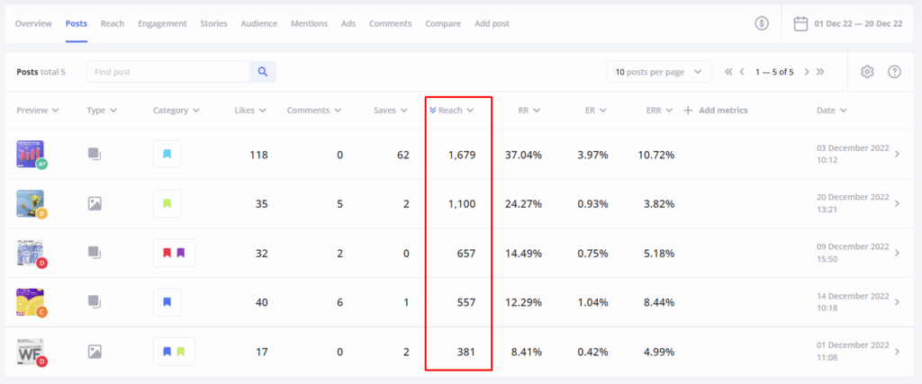 The most useful for you will be the top posts for reach (“Summary” tab), as with its help you can draw conclusions which posts get more coverage than others. Try to determine what unites these posts, and publish new ones.