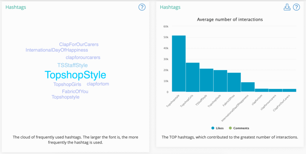 Also branded hashtags will be useful for custom tracking of the content around your brand. To do this, put a brand hashtag (yours or your competitor’s) in tracking in LiveDune and analyze the content that is published on it.