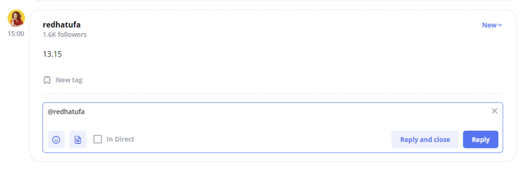To manage and respond to comments in Instagram or Facebook from the LiveDune interface, you need to move the cursor to the comment you are interested in and click on the “Reply” button, after which a field for entering the comment text will appear, as well as the “Send” button.