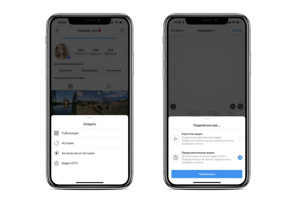 Перед тем как загрузить видео в IGTV, важно знать несколько технических особенностей. Во-первых, снимать ролики в IGTV нельзя, для этого необходимо предварительно снять видео на телефон или камеру. Можно загрузить видео как горизонтального, так и вертикального форматов. Во-вторых, длительность видео для IGTV, загружаемое с мобильного телефона, должно быть от 1 до 15 минут. Если с компьютера — до 60 минут. Обложку к видео можно выбрать из фрагмента видеоролика или загрузить фото отдельно. Более подробно о технических рекомендациях мы рассказали в нашей статье — Какие видео можно выкладывать в Инстаграм.