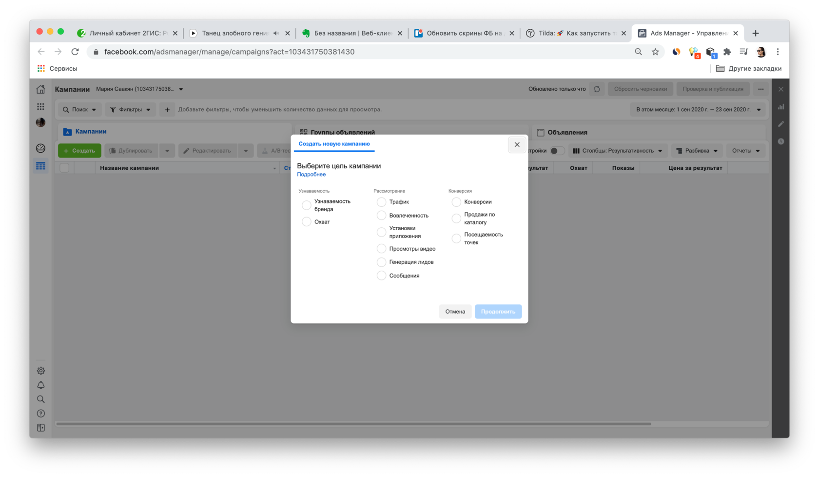 Шаг 3. После того как выбрали цель, внизу вписываем название кампании. Но это не обязательно.