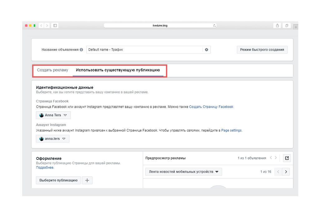 Шаг 11. Вы можете использовать как уже существующий пост, так и создать отдельное объявление только для рекламы.