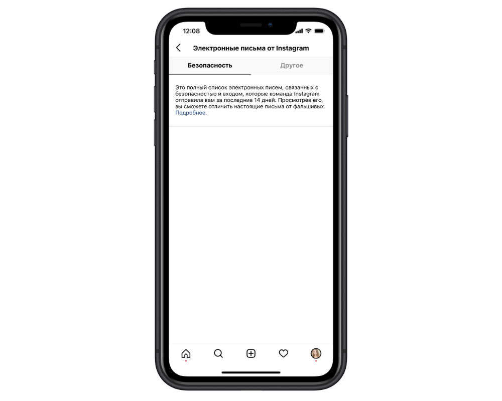 Также Instagram в целях защиты своих пользователей от фишинга и спама создал отдельный раздел, в котором вы можете найти все электронные письма от соцсети, отправленные вам за последние 2 недели. Для этого с телефона зайдите в свой аккаунт с приложения — «Настройки» — «Безопасность» — «Электронные письма от Instagram». Если в обоих разделах пусто, значит вам еще не поступил ответ. Чтобы перейти в этот раздел с компьютера, откройте свой профиль в веб-версии Instagram, в шапке профиля нажмите на шестеренку — «Электронные письма от Instagram».