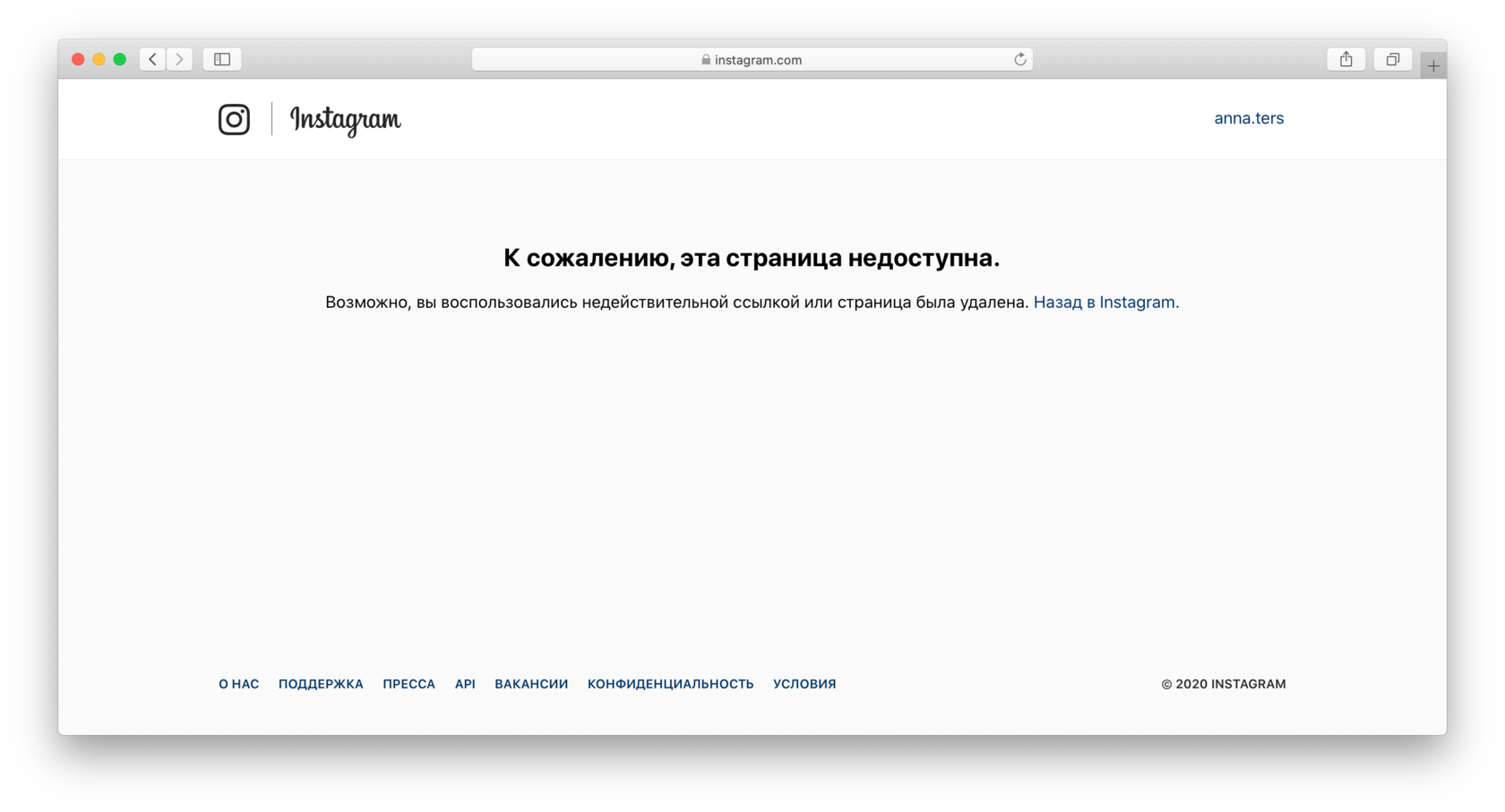 В веб-версии Инстаграм страница пользователя будет недоступна. Но если страница удалена, соцсеть показывает аналогичную информацию. Чтобы удостовериться, что вас действительно заблокировали, повторите действие в веб-версии Инстаграм, но без авторизации в своем аккаунте. Либо воспользуйтесь приложением.