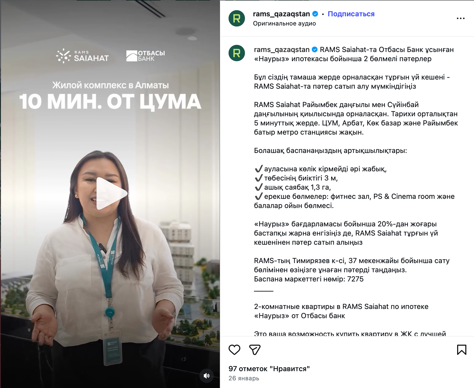 - RAMS Qazaqstan (топ-2 по лайкам и топ-10 по подписчикам),