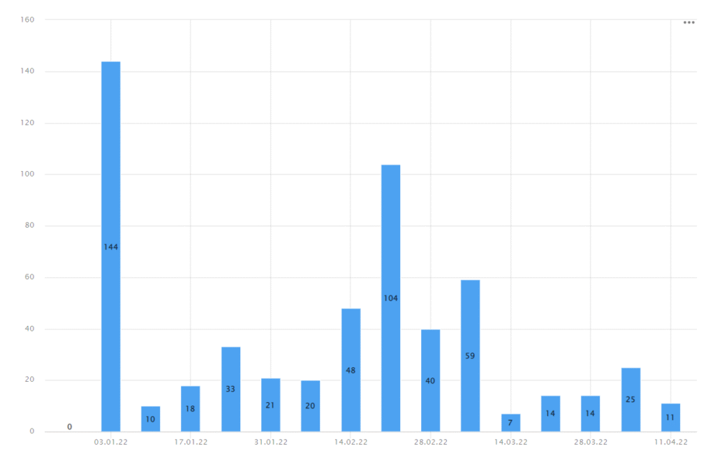 Как пример ненормального распределения (с выбросами) можно рассматривать среднее время ответа на комментарии по неделям: