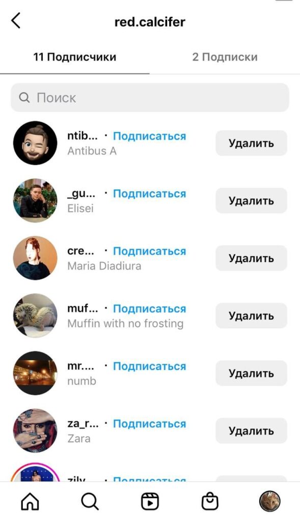 3. Пролистать весь список фолловеров и попробовать вспомнить, кого из тех, кто был на вас подписан, больше там нет. Если у вас есть конкретный «подозреваемый» — можно ввести его логин в поисковую строку сверху и проверить, по-прежнему ли он следит за вашим аккаунтом.