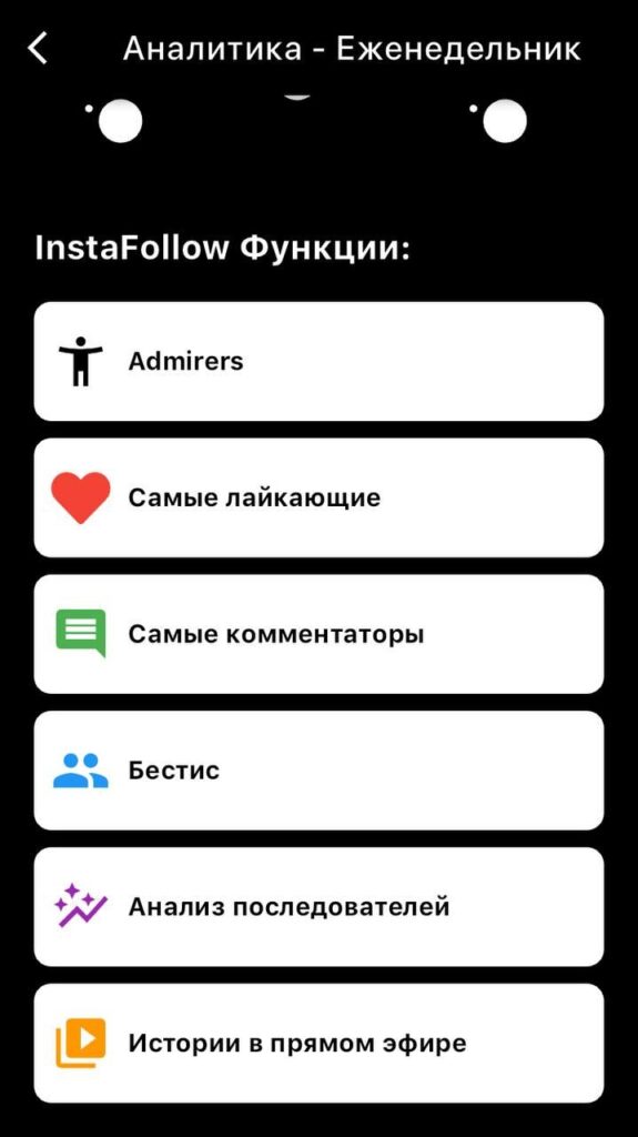 Приложение для обширной аналитики аккаунта. Помимо просмотра отписок, отображает пользователей, которые вас заблокировали или заходят в ваш профиль и не проявляют активности, вычисляет самые популярные посты в аккаунте и формирует подробные отчёты о вовлечённости подписчиков.