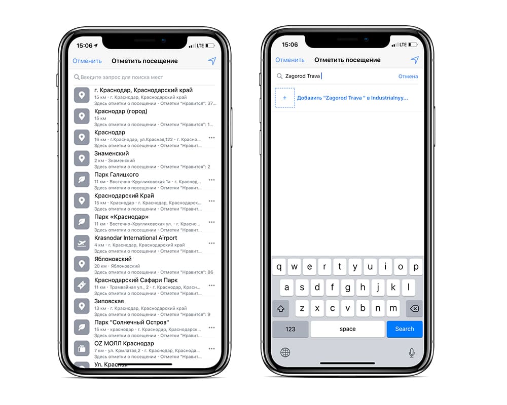 - Введите в строку поиска название места, которое хотите добавить. Если оно не было создано ранее, Facebook* предложит добавить новое.