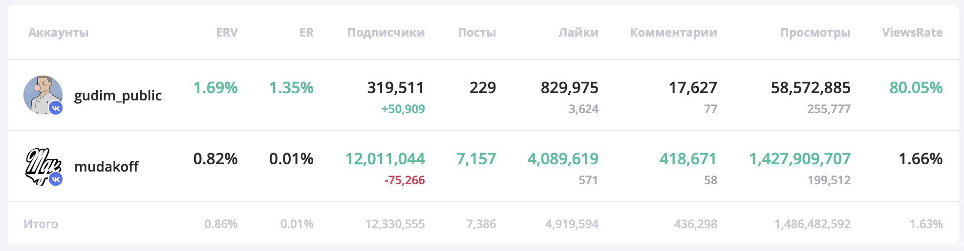 Отслеживайте изменения метрик своих и конкурентных аккаунтов в соцсетях с помощью LiveDune