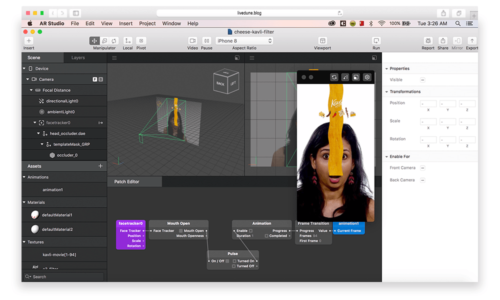 Шаг 2. Запускаем программу Spark AR Studio. Соединяем смартфон и компьютер через usb, чтобы потом протестировать свою маску на смартфоне.