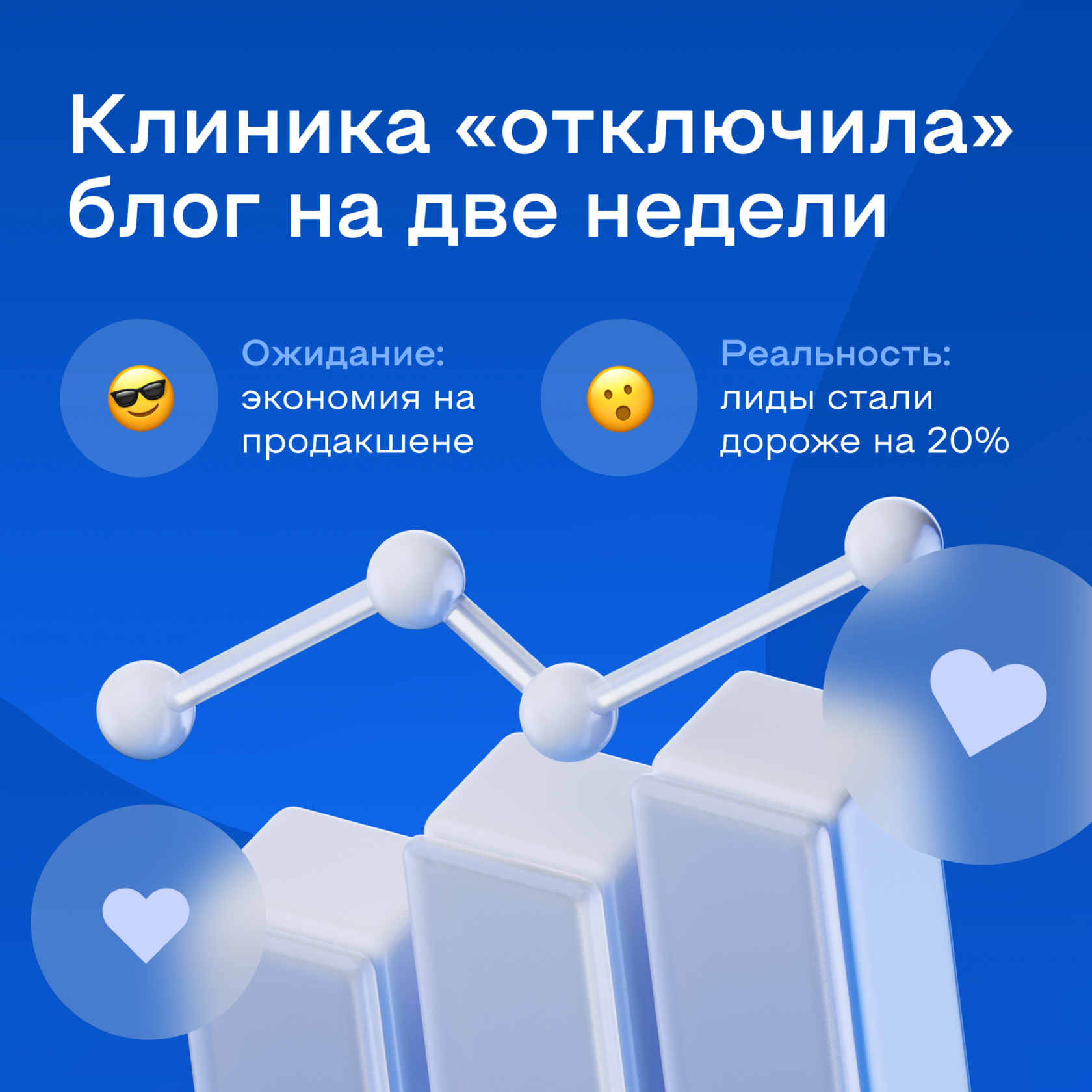 Когда месяц, два, три врачи продают мало, это приводит к банкротству. Хотя есть клиники, которые работают только на холодном трафике, и он окупается х3 даже без “продающих” врачей — запустили рекламу на одну сумму, получили прибыль в три раза больше. Зачем тогда вести блог, если реклама и так окупается? Ценность блога в том, что вместо х3 будет x4 или x5 за счет этого прогрева. Блог напрямую влияет на выручку.